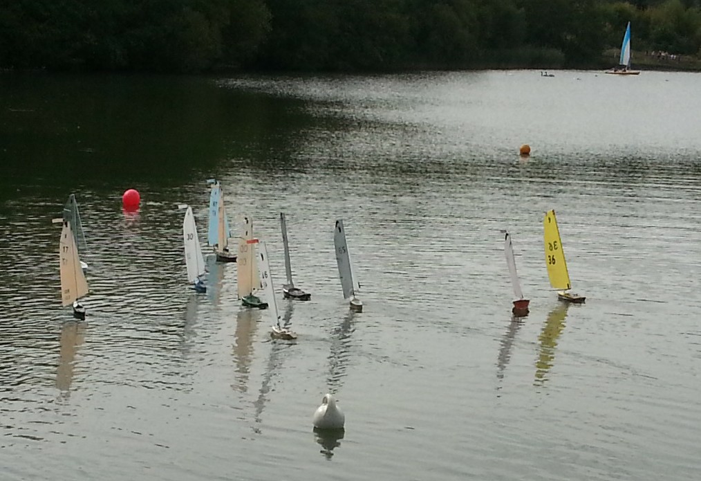 This open was the penultimate event in the 9 race SailFooty UK series and was organised by Southwater Dabblers Model Boat Club, on Southwater Lake. Whilst the weather was warm and sunny, the wind was very light indeed, blowing from behind the control area on the south-eastern pontoon. Progress was slow initially, but by the afternoon there was a reasonable breeze, but still incredibly swirly and full of holes.