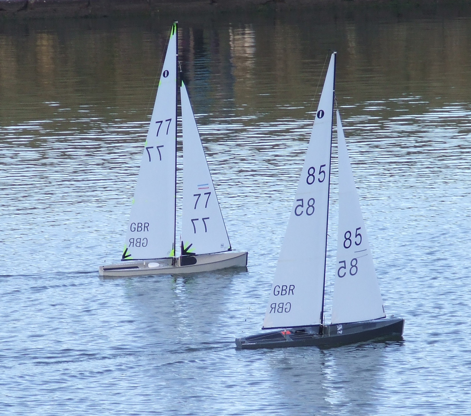 A total of 22 skippers were greeted by sunny skies, bacon sandwiches and a light breeze blowing straight down the lake towards the clubhouse. With boats rigged and skippers briefed the wind disappeared completely and prompted the first of many course changes throughout the day for the race team of Tommy Mills and Dave Hollom who marshalled the busy single fleet start lines very well. The light winds made for an interesting tuning cycle for many skippers and MYA President Derek Priestley’s famed ‘floppy trim’ seemed to be a good choice for the first couple of races. As the morning went on the wind came round to the seaward side towards the clubhouse which allowed the full length of the lake to be used and some Christmas calories to be walked off. There were some great battles throughout the fleet, at the top end there was some great racing between local skippers Rob Walsh and Derek with John Tushingham, Phil Playle and Chris Harris keeping the pressure on. The lower orders were also hotly contested throughout the morning with all the skippers enjoying some very social racing. Lunchtime was welcomed with a now famous Fleetwood hotpot and steaming cups of tea provided by Maureen, Jackie and Derek. During the lunch break the wind disappeared again and came back from the seaward side nearest the clubhouse which prompted another course change and a start line that made the control bank end an interesting choice for some competitors and in the light breeze there was a lot of light hearted banter at the afternoon starts. The afternoon session saw some tight racing as the wind became very light again which made getting a clean start very important. The top mark provided some interesting contacts as some managed to make in one but having to pinch to the mark on port which made easy targets for those sailing the longer course and approaching on starboard. The day finished with ‘Timmy snacks’ of mince pies, more tea and current IOM World Champion Rob Walsh taking the victory from John Tushingham in second place. Derek Priestley, Chris Harris, Phil Playle, Mark Dicks, Shaun Priestley, Bill Culshaw, Dave Burke, Mick Chamberlain and Tim Long made up the rest of the top eleven ( in no particular order!)