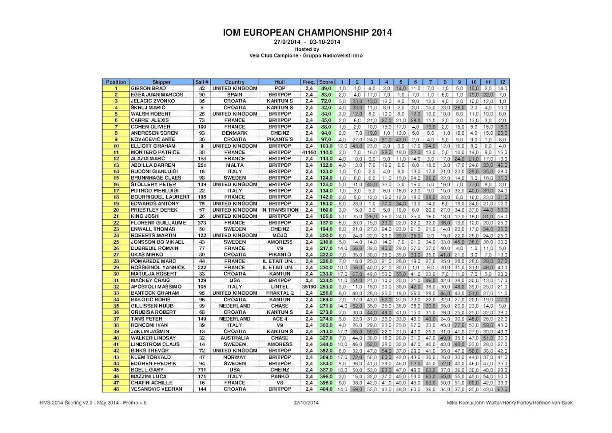 Results after Race 12 below with Race 13 completed but not posted due to a protest.