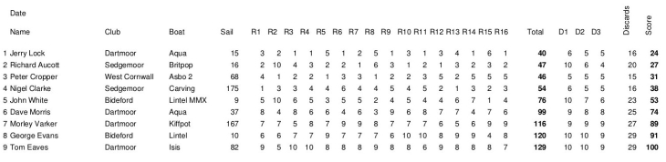The day started with local member Jerry Lock starting as he meant to go on with Peter Cropper hot on his heals. As the wind varied through the day other skippers Nigel Clarke, John White & Richard Aucott took wins.