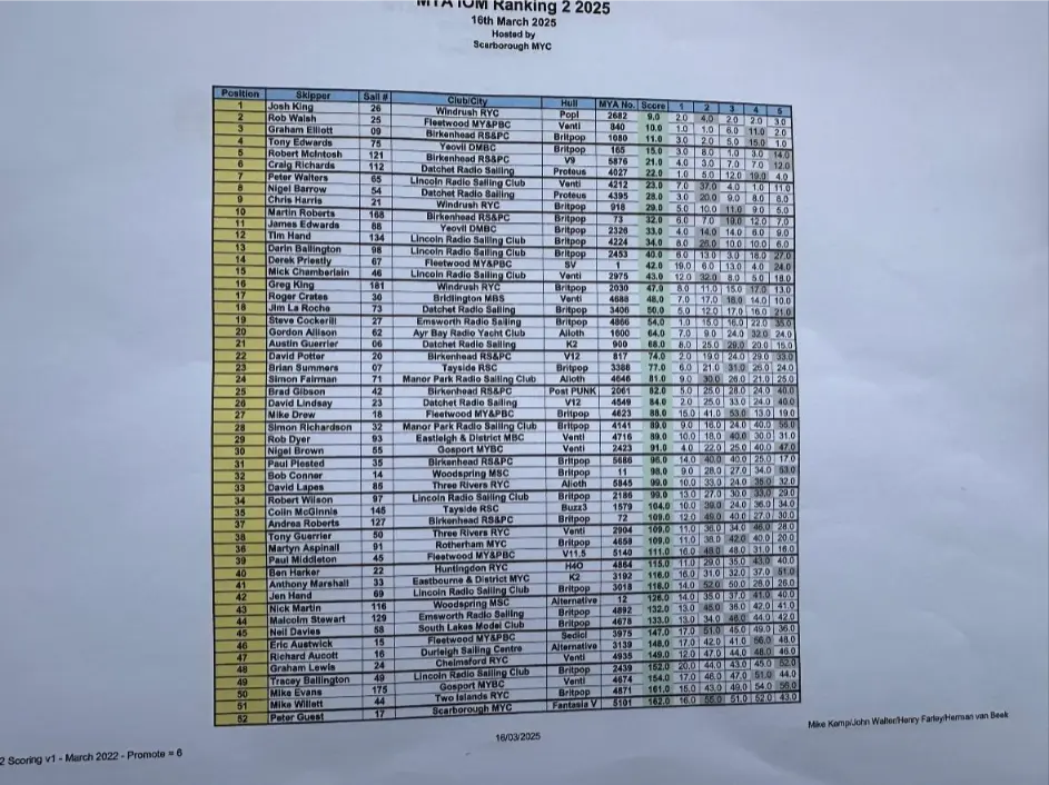 2025 IOM Ranking 1&2 at Scarborough – Report and Results