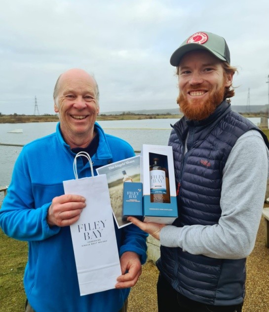 With 5 races completed, the prize giving again took place in the Water Park café with a good hot drink taken by many. The overall race results were much closer today with only a single point separating the podium positions but Josh King sailing the BG designed “POP!” moved up 2 steps of the podium from yesterday taking 1st place on 9pts and another bottle of Flagship Malt Whisky courtesy of Spirit of Yorkshire. Rob Walsh was 2nd on 10pts and Graham Elliott 3rd on 11pts.