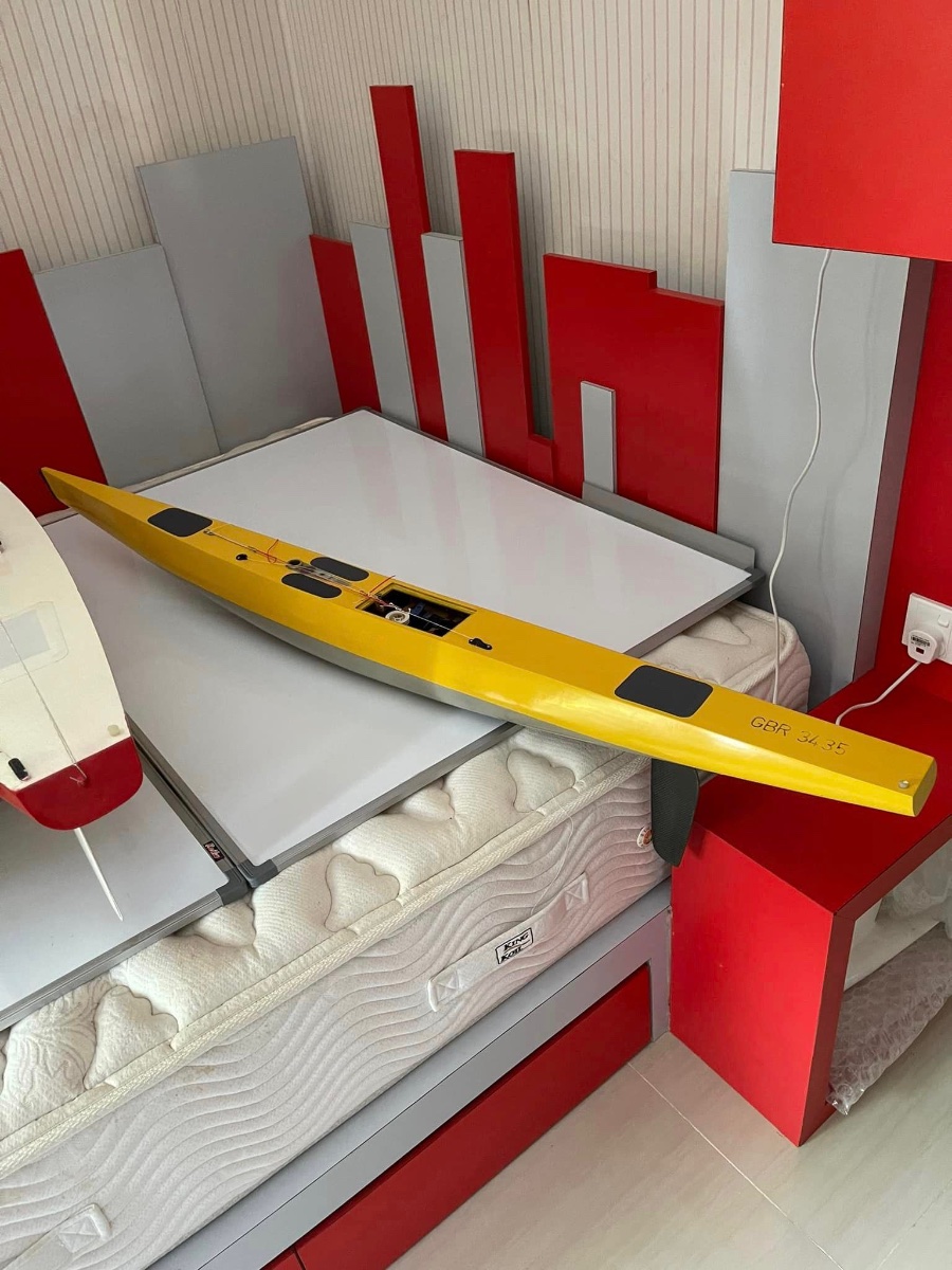 Finally got round to giving my Alternative a refit. Main job was to re coat the hull. Never having been too pleased with the original epoxy finish. Sanded all of with 120 and proceeded to apply 3 coats XCR epoxy, wet on wet. Finishing with 120 dry followed by 400/800/1200 wet to achieve a super slippery finish. The epoxy is extremely hard and also adds strength to the cedar planking. The technicalities of weight are detailed, since these are vital for any one building in wood. Hull finish (epoxy) sanded of with 120. -10grms 3 coats XCR epoxy wet on wet. + 60grms. (20grms / coat) applied with roller Flat back as described above. -30 I have added 20grm to the boat but have a much tougher coating and have been able to sharpen the chines more. Super, super smooth hull. Richard