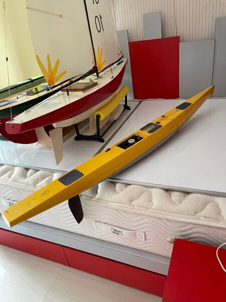 4 years down the line now and Alternative continues to sail well. Have often been asked about the boat when sailing; seems to be a popular design for home building. The only mod I have made is the fitting of a small Hitec waterproof servo (HS5086 WP) right on the rudder stock. This employs a small moulding made by Dave Creed. See picture for installation. Very effective and, because it is lighter than a typical rudder servo, does not have a negative effect being right on the end of the boat. Absolutely no play because there is no linkage. BUT the achievable angle is greater. Now this is useful when using the rudder as a brake; start line for example. Needs to be allowed for in normal sailing though. Have used this servo completely in the open on Mini 40 trimaran, but lives under the aft deck patch on Alternative. Richard