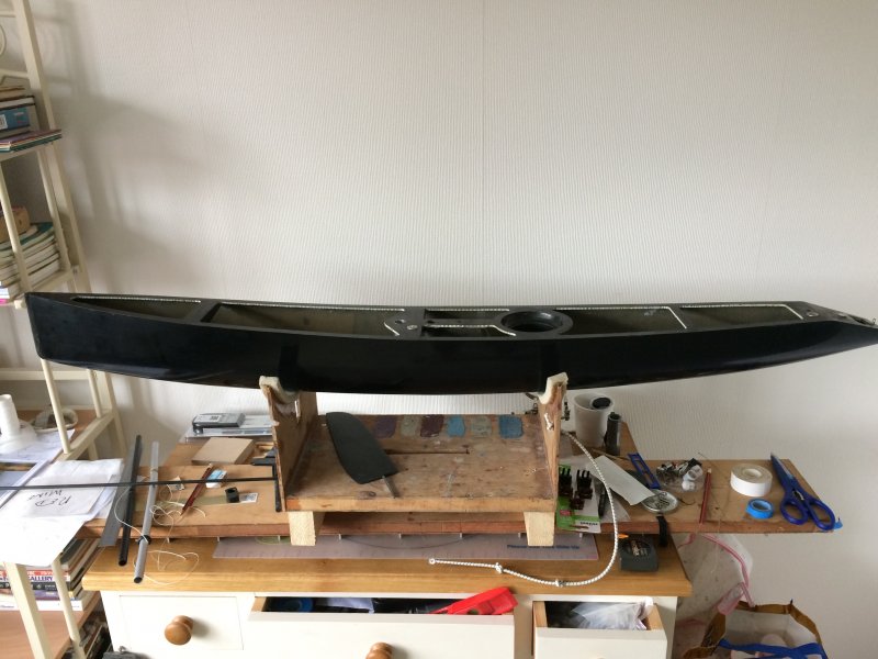 Decided to dip a toe into the Marblehead class. Just sold my Mini40 to fund project. Have a beautifully moulded Starkers, Creed carbon hull with cored deck, 468grm.. A parallel fin with fairly stubby ballast at 3620grm and guestimate draft of 580mm. Some pics attached. Would appreciate any advice on several decisions I need to make, and I have read the excellent articles by Brad and Graham plus several others. Lack of experience with the rig inclines me towards shroudless. However the aft mast tube would need replacing with the same size diameter as the forward swing rig tube; is it worth the hassle? Can a swing rig just be fitted as shroudless anyway, with a few mods of course. What are the different rig ratios and how do I determine which I need. I have a very old PJ top swing rig to play with initially. I really want to dual rate as a 10R also so, once again which is the best top (max area) rig to go for; plus swing or shroudless ? Thinking of stumping up for an RMG, however as this is my "starter" boat which slower winch is worth considering. (have RMG in my IOM) So there we are for starters. Looking for any used sails/rigs to get a good feel before commissioning new, so where is everyones spare/surplus kit ? Thanks for reading. Richard