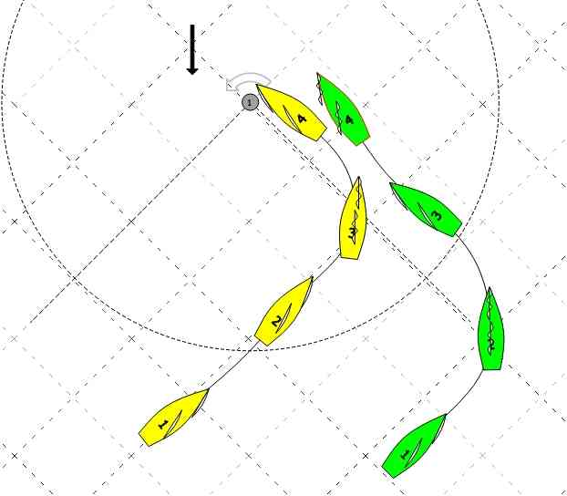 Would RC sailing be better served by moving to a Three length zone? The RRS defines the zone as three boat lengths, and Appendix E modifies that to four lengths. I wrote to the IRSA Rules Committee several years ago, suggesting this change. The answer was that there is no discussion nor support for such a change. So my intent here is to generate some discussion and gauge support for such a change. History. The RRS used to specify a two length zone, and RC sailing adopted a four length zone to allow for more reaction time. Subsequently the RRS changed the zone to three lengths, but Appendix E did not change. Why would we want consider changing Appendix E to use the three length zone? I suggest several reasons. 1. Mark Room rights conferred by R 18 are based on accurately placing the boats positions when the first boat touches the zone. Many skippers have difficulty visualizing the four length zone. It is easy to visualize one length, a little harder to visualize two, harder again to visualize three and so on. The larger the zone, the harder it is to visualize its location. So a smaller zone would assist a more accurate visualization. The counter argument is that a four length zone provides more reaction time that a three length zone. 2. The World Sailing Case Book examples all relate to a three length zone. It is possible with the larger four length zone for issues to develop which may not happen in the smaller zone. If we drop the Appendix E change, and use the three length zone, then all relevant cases would apply. 3. The RRS 2017- 2020 version introduced a change to RRS 18.3 Tacking in the zone. Under the new version, a stbd tack boat has to be fetching the mark from outside the zone for R 18.3 to apply. If R 18.3 applies then the port tack boat that tacks inside the stbd tack boat does not receive Mark Room and may not force the stbd tack boat above close hauled. However when both boats enter the zone on port and tack to stbd, then 18.3 does not apply and when they become overlapped, 18.2.a will apply. This gives Mark Room to the inside boat as soon as she passes head to wind (HTW) and the outside boat must give her that room. With Mark Room comes R21 Exoneration, so even if the inside boat tacks close to the outside boat, she is exonerated for breaking R 13 Tacking. There is a major shift in rights between these two scenarios, and it is all based on when the outside boat achieved stbd tack relative to the location of the zone. I wrote about this change on my Rules discussion web site. Here is an example. We have two boats sailing close hauled on port tack and approaching the stbd tack lay line for a mark to be rounded to port. Yellow is to windward and about two boat lengths below the port lay line. Green is about two boat lengths to leeward of Yellow and sufficiently clear ahead that she can tack to stbd and not break R 13 Tacking. Green tacks on the lay line. Yellow tacks inside Green. Green goes above HTW and there is contact. Yellow touches the mark, and there is contact between the boats. If there were a three length zone, it would be easy to infer that Green entered the zone on stbd and R 18.3 would apply and Yellow would be at fault. However with a four length zone, it is very close as to where Green passed HTW and gained stbd tack – inside or outside the zone. Yet the outcome for this incident and the applicable rule (R 18.3 or 18.2.a) is dependent upon this factor. Here are the two boats – the diagrams are identical, except that the zone is changed from three lengths to four. Remember that there are no circles on the water, and we have to estimate the location of the zone, possibly from a distance of 30 meters or more. John