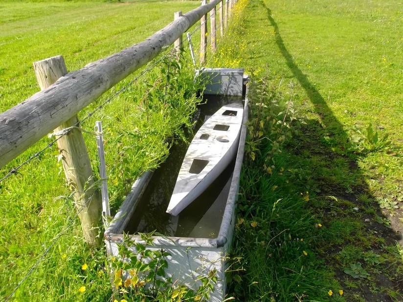 Hi, Slow progress I know but pleased to report Brio is nearing completion, today was the first time I had the keel assembly bolted in, the sun was shining so I thought it would be a good time to see if she floated. As you can see the conditions were not exactly challenging as the horse drinker was the only water available but it served the purpose beautifully, and it kind of fits with the agricultural assembly of my boats. Pleased to report she floated to her lines first time out (with a little guesstimated ballast for the rig and fittings). Mast and spars are now complete, I have started on the sails and have fingers crossed for a first sail in June. Just the boring bit left, rubbing down and painting...rubbing down and painting.... Brian