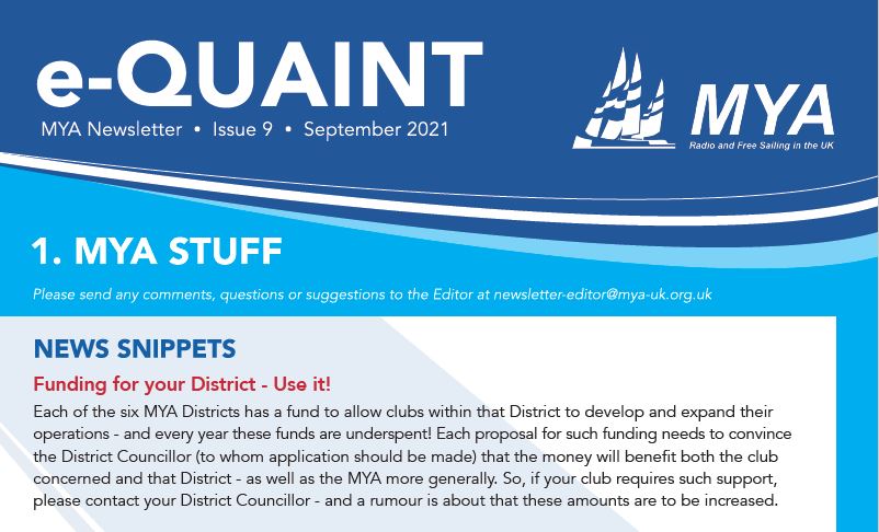 If you have an article or anything you want to contribute to the next newsletter, please contact Paul Brooks directly by email. newsletter-editor@mya-uk.org.uk