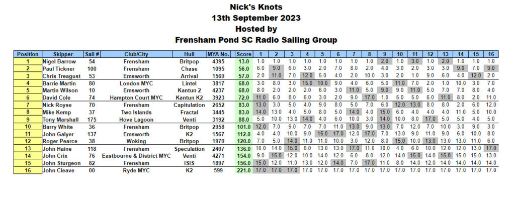 Frensham Pond Radio Sailing Group – Nick’s Knots trophy 2023