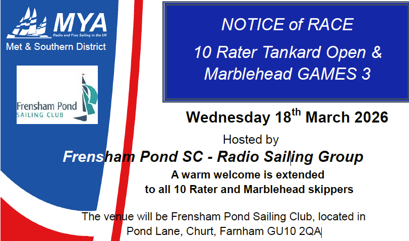 Notice of Race – 10 Rater Tankard Open & Marblehead GAMES 3 – 18th March 2026