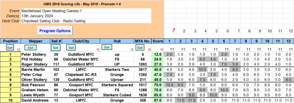 Report on the M&S Marblehead Open Games 1 – 13th January 2024 at Chipstead SC – Radio Sailing