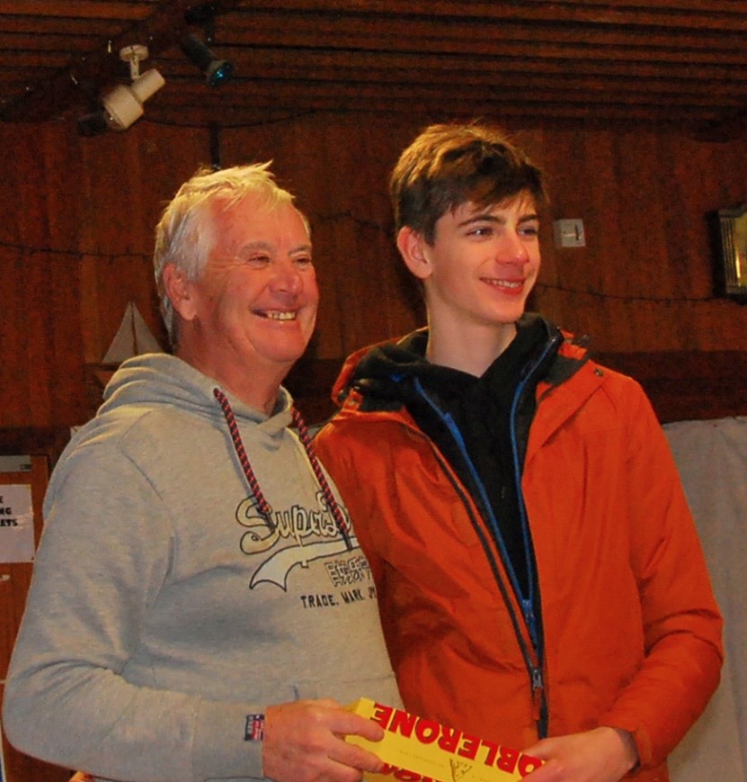The Open meeting prize giving distributed a bottle of wine down to 6th place and a special prize to the junior sailor Oliver Stollery