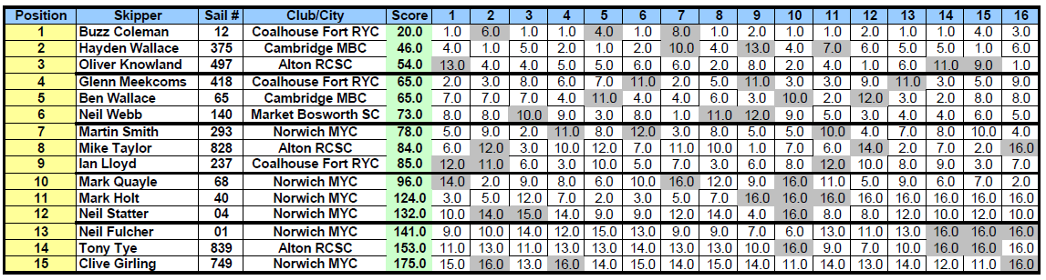 Results for Event 1 of the Eastern District DF95 Champion Skipper Series – NMYC 18th April