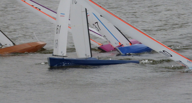 The first race due to a lack of wind took 25 minutes to complete and was won by Colin Goodman, Jim LaRoche in second and Terry Burton third. Race two was shortened to a single lap but if anything there was even less wind with the inevitable holes and took just as long to complete, This time won by Terry Burton followed by Colin Goodman. If anyone had their crystal ball it would have foretold that these were the skippers to beat.